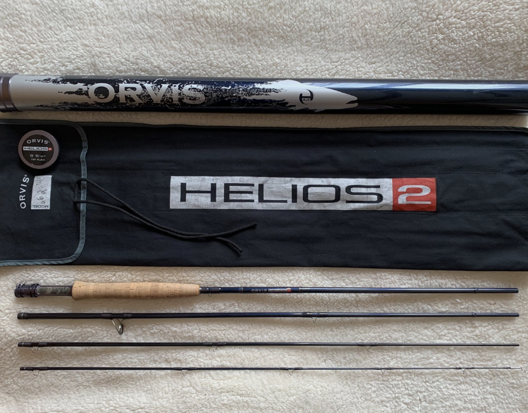 The Orvis Helios 2 is a high-performance, versatile fly rod known for being 20% lighter and 20% stronger than its predecessor, with a 100% increase in tip-impact strength. Featuring a distinctive midnight blue blank, it offers exceptional accuracy, fine-tuned tapers for superior tracking, and is available in both Tip-Flex and Mid-Flex models to suit different casting styles